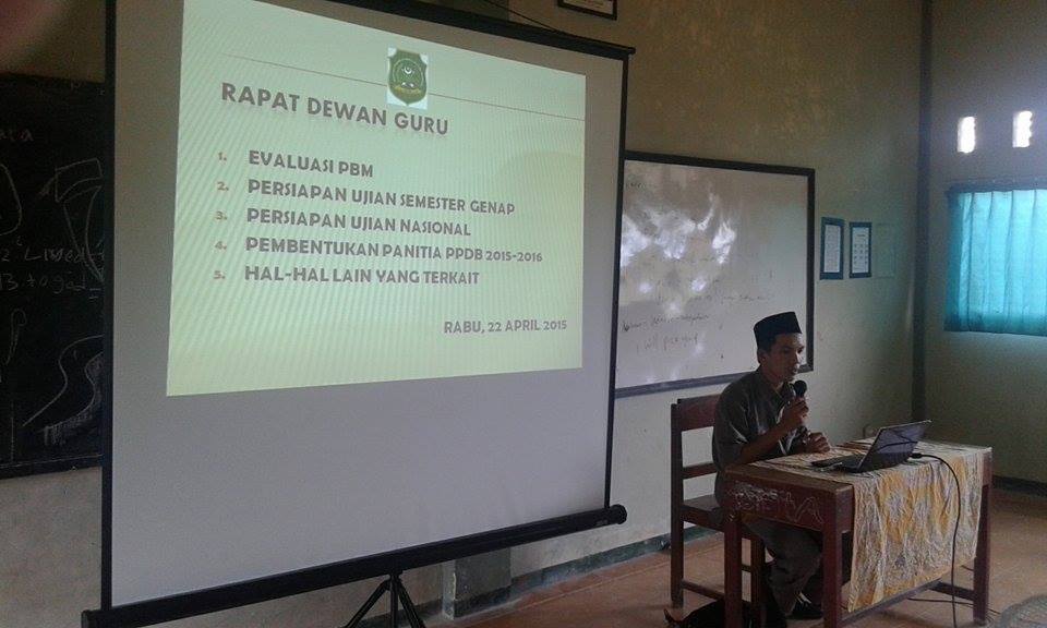 Sedangkan untuk penerimaan siswa baru , kepala madrasah meminta semua guru dan pegawai untuk menjadi corong atau penyampai informasi kepada calon siswa baru lulusan SD/MI agar harapan atau target perolehan siswa baru tercapai dengan baik. Dalam rapat tersebut juga dibentuk Panitia Penerimaan Peserta Didik Baru (PPDB) Tahun Pelajaran 2015-2016 dengan Ketua Panitia Sudirman,S.Pd , Maksum,S.Pd,I sebagai Sekretaris dan bendahara Muh. Saleh,S.Pd.I (tiem)
